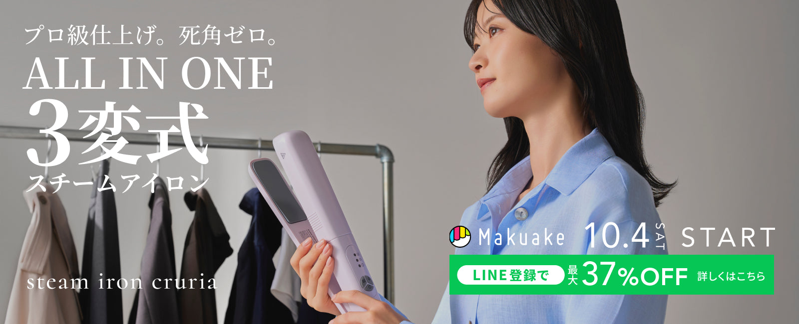 一芸特化型家電を数多く展開するプライベートブランドSunRuck(サンルック、本社:宮城県大河原町)から、挟んで、プレスして、ピュアスチームでショットして、シワ伸ばしと除菌99.9%が適う衣類ケア家電「Cruria(クルリア)」が登場しました。イベントや宴会が増えるこれからの時期、外から持ち帰る衣類の除菌・消臭もシワ伸ばしと一緒に出来るスチームアイロンです。 ヘアアイロン型3変式衣類スチームアイロンCruriaは、先行予約販売開始早々に目標を達成、12時間後には応援購入総額1,000万円を突破、目標1万%を達成いたしました。さらに、販売初日にMakuake内3部門のランキングで1位を獲得、3冠を達成しました。※この度、多くの方々にご支援を賜りましたこと、心より感謝を申し上げます。(※25年10月5日時点の総合・ガジェット・ファッションランキング) Cruriaはヘアアイロンの要領で細かいプリーツや襟、袖などを挟んでシワを伸ばすというアイデアが、「ありそうでなかった」とアイロンがけが苦手な多くの方から支持を受けております。アイロン台いらずでハンガーにかけたままシワ伸ばしと除菌が適うため、タイパとスぺパの2つを備えた時短アイテムです。挟む・プレス・ショットスチームの3変式アイロンCruriaは、2025年11月14日(月)22:00までMakuakeで先行予約販売しています。 ◆Makuakeプロジェクトページhttps://www.makuake.com/project/sr-ht2002