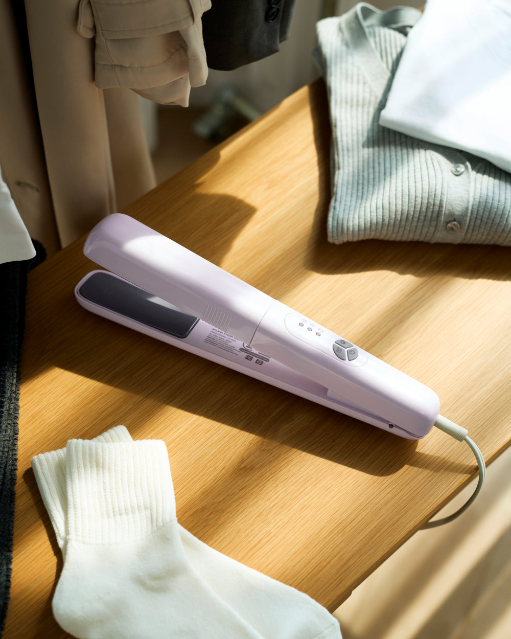 「衣類を挟んで99.9%除菌!!」3変式ヘアアイロン型衣類スチームアイロンCruria(クルリ...