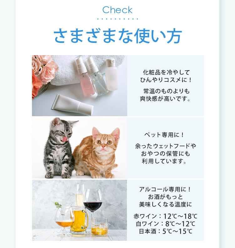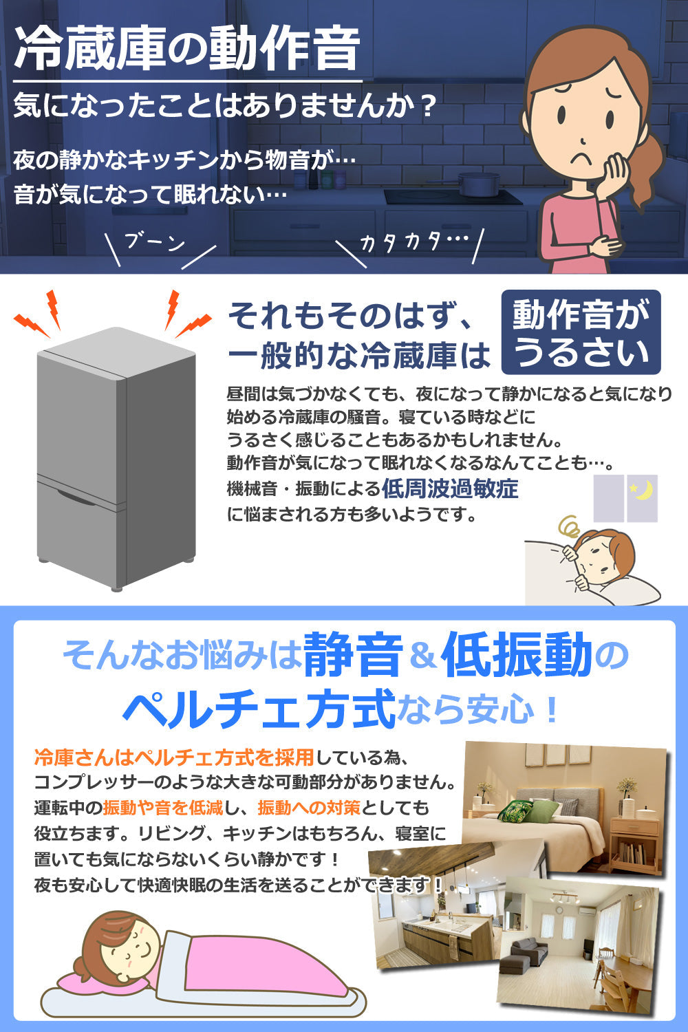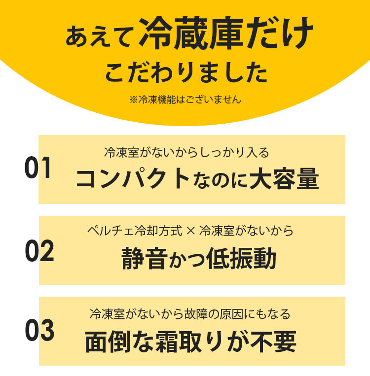 コンパクトサイズだからせまいスペースや静寂性の高い寝室など、今まで冷蔵庫が置けなかったちょっとした場所に使えます!