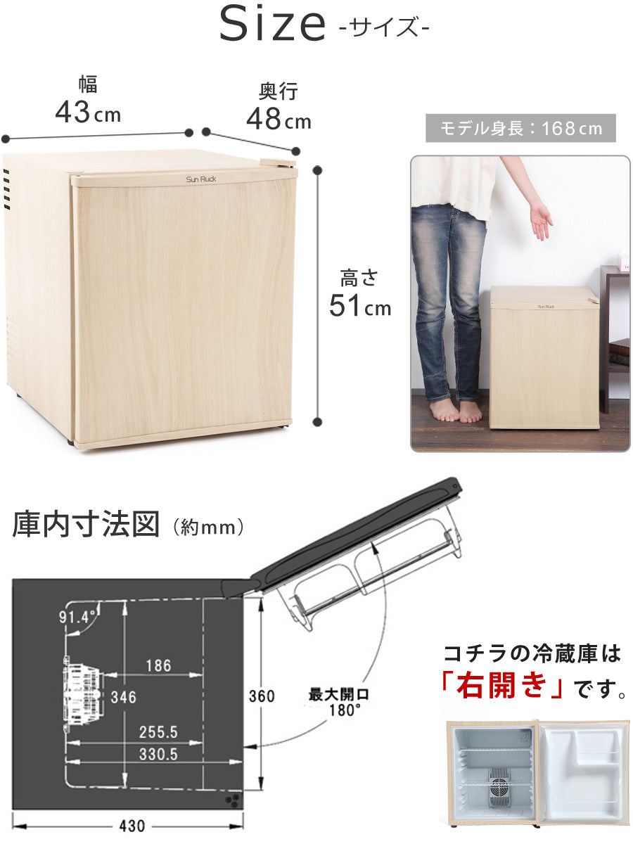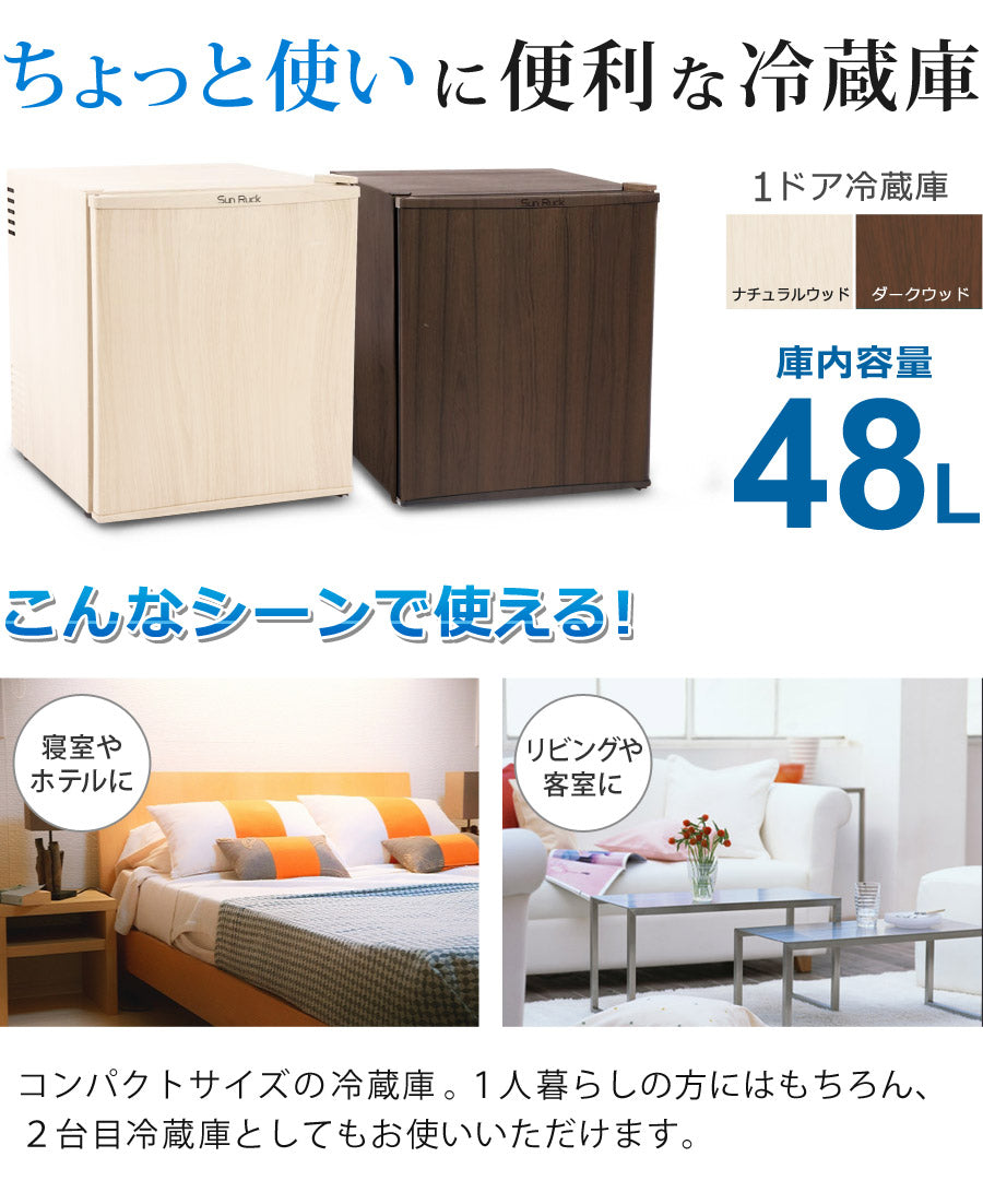 【当店限定180日延長保証】 Sun Ruck 木目調 冷蔵庫 48L 冷庫さん ペルチェ方式 1ドア 右開き おしゃれ 一人暮らし 1ドア冷蔵庫 木目調冷蔵庫 小型冷蔵庫 セカンド冷蔵庫 ミニ冷蔵庫 コンパクト 静音 新生活 ひとり暮らし SR-R4805