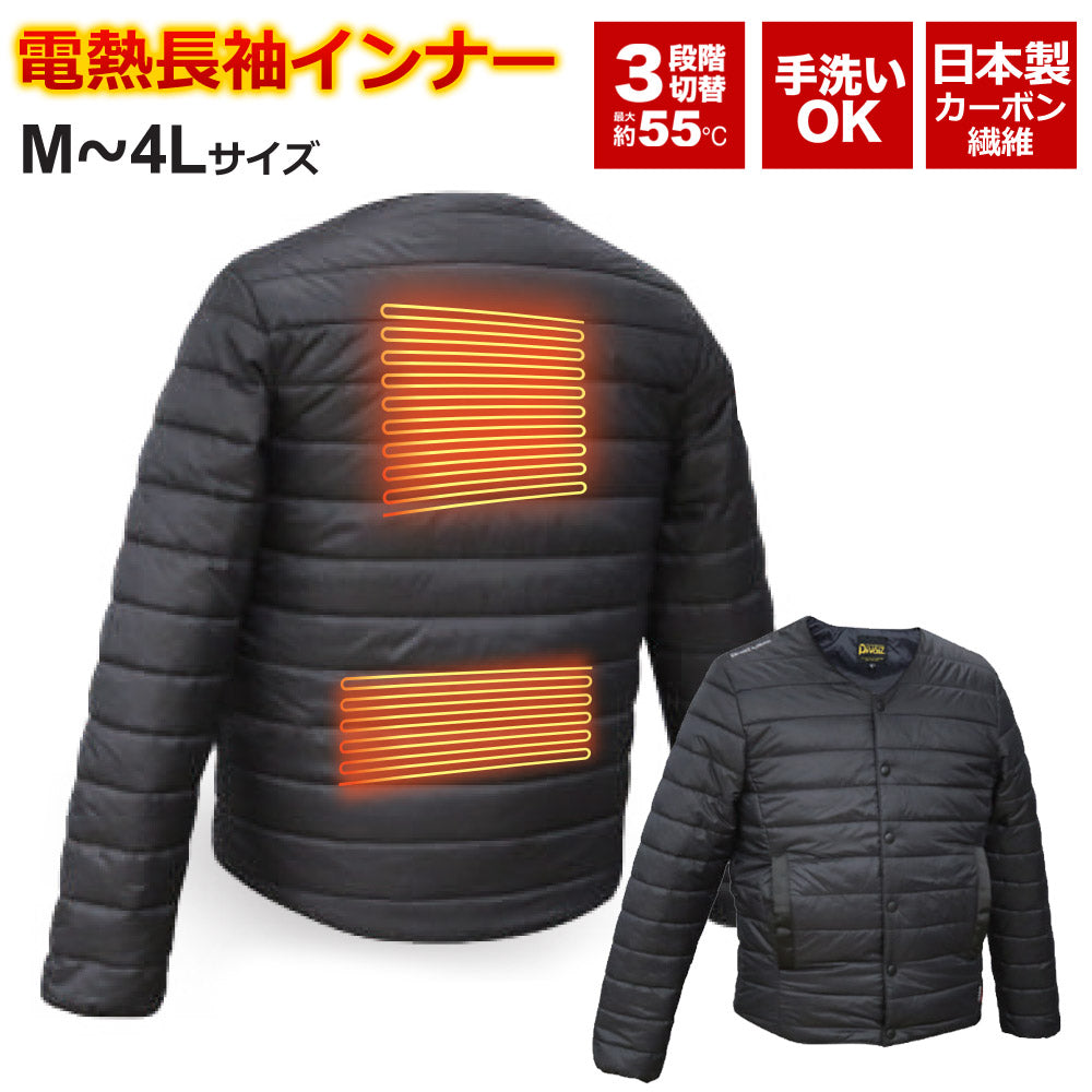 電熱長袖インナー 速暖 洗える 軽量 男女兼用 日本製繊維 3段階温度調節 ヒーター内蔵 電熱インナー 長袖ジャケット DiVaiZ 0058AZ-804 季節家電