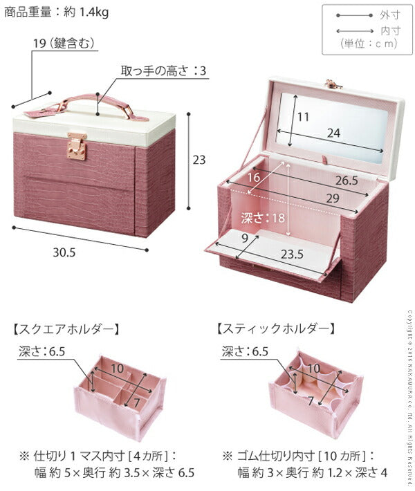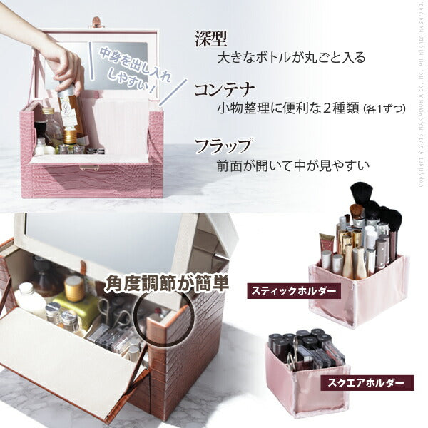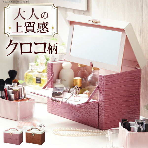 メイクボックス 鏡付き バニティ ワタシ流にカスタマイズできる クロコ柄メイクボックス 〔クラッセ〕 クロコダイル 大容量 コスメボックス化粧台 バニティケース コスメ ギフト 軽量 【代引不可】【同梱不可】 母の日