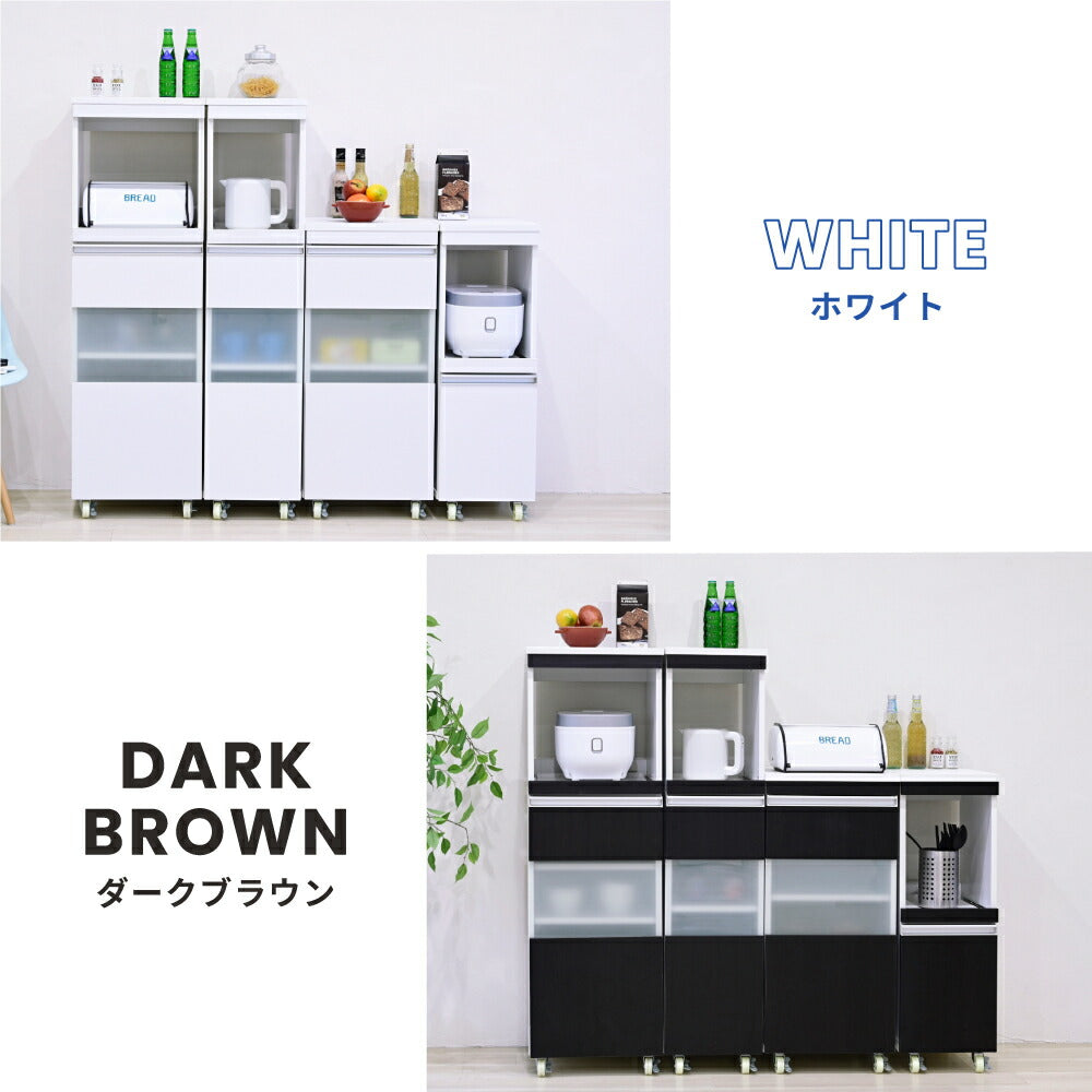 キッチン 隙間収納 ラック キャビネット 幅40 高さ90 奥行40 スリム 食器棚 4段 ロータイプ キャスター コンパクト ガラス 扉付き 隙間ラック ワゴン 【代引不可】