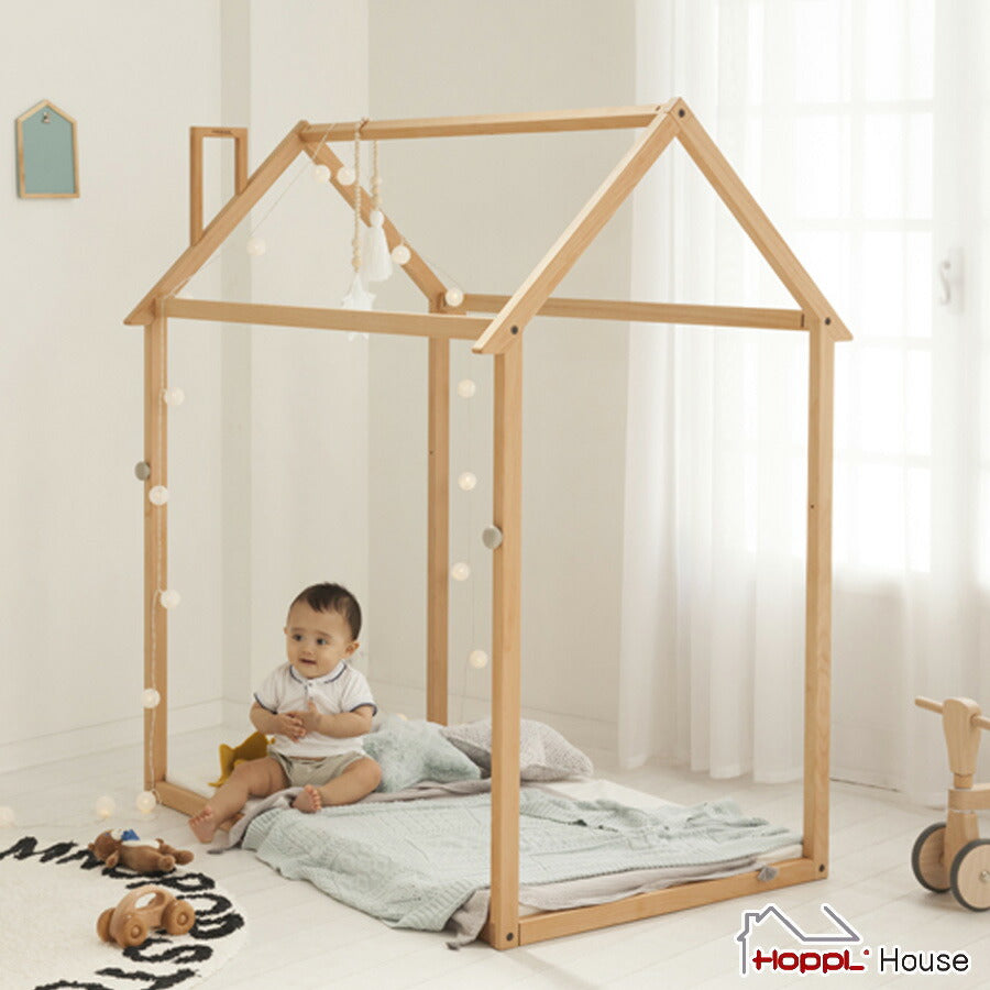 キッズハウス 木製 プレイハウス 1年保証 HOPPL ホップル ベッドハウス 子供用 ハウス 家 屋内 簡単組立 リビング 子供部屋 女の子 男の子 キッズスペース 組立式 おしゃれ かわいい 新生活 入園祝い 入学祝い ホップルハウス HS-FR-NA 【代引/同梱不可】