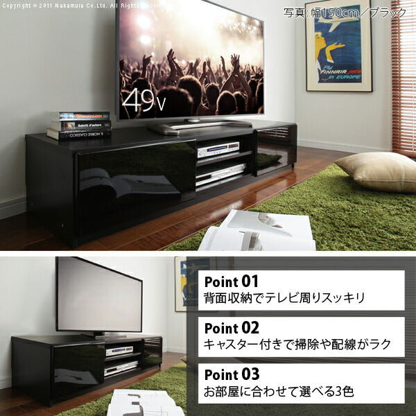テレビ台 ローボード 幅150cm 背面収納 キャスター付き〔ロビン〕 テレビボード リビングボード TVボード 北欧 モダン 鏡面 テレビラック リビング収納 TV台 AVボード 収納 パソコン台 木目調 ウォールナット 茶 ホワイト 白 ブラック 黒