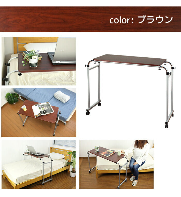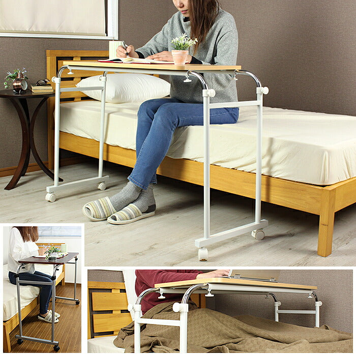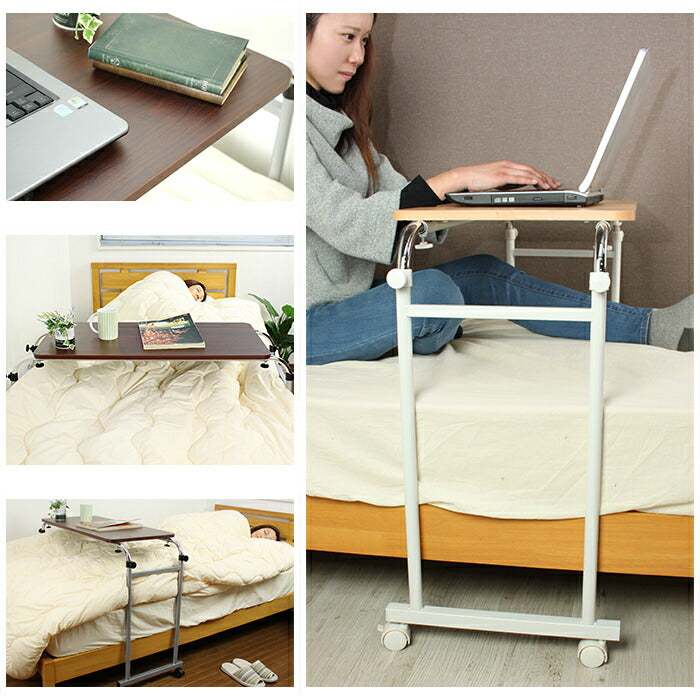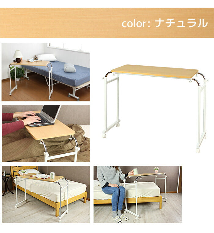 伸縮式 ベッドテーブル 木目調 高さ調節 サイドテーブル 介護用テーブル デスク 机 ベッドサイドテーブル インテリア デスク 机 サイドデスク 介護 テーブル 寝室 MK-512-NA 【代引不可】【同梱不可】