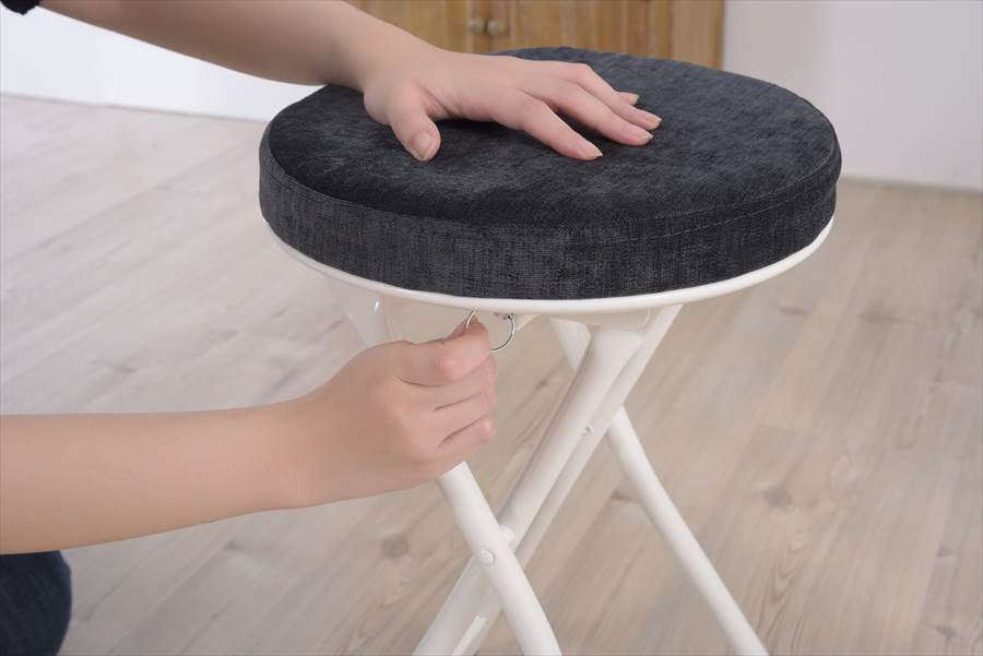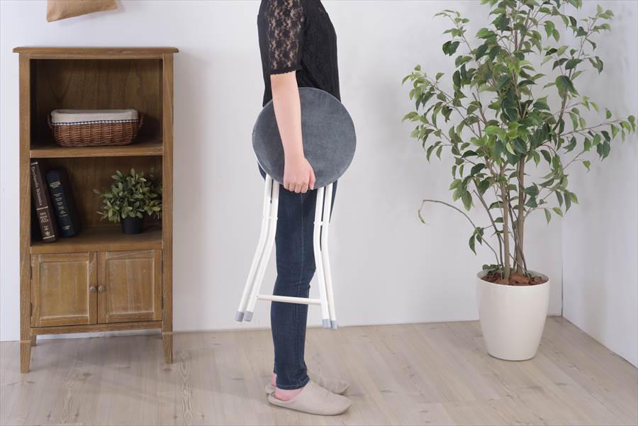 | ボリュームのある厚めの座面でしっかりとした座り心地です。 コンパクトなサイズ感なので、キッチンや玄関など限られたスペースでも使用できます。 |