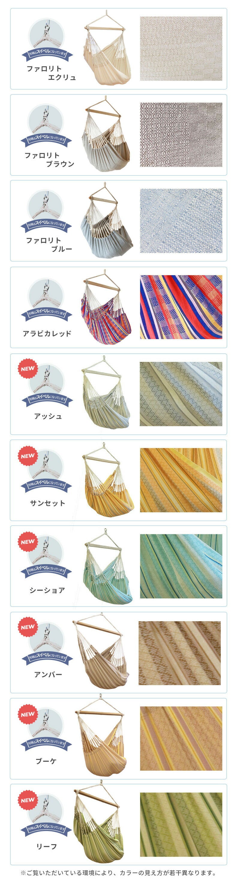 ハンモックチェアクラシコカラー | アンバー ブーケ リーフ シーショア(ブルー) サンセット(オレンジ) アッシュ(グレー) アラビカレッド ファロリトエクリュ ファロリトブラウン ファロリトブルー |