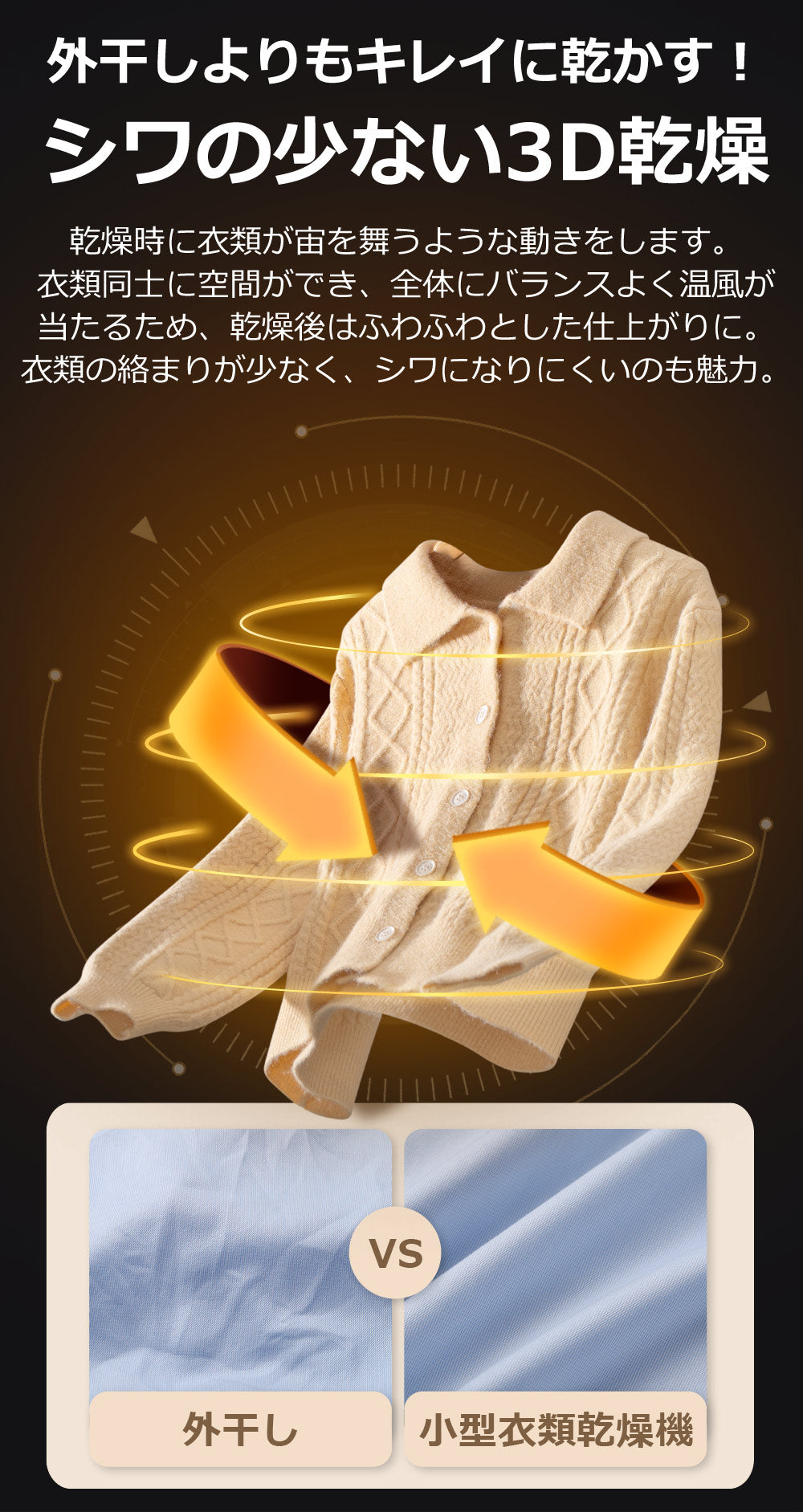 ※ご使用の際は、必ず十分に脱水した状態で衣類乾燥を行ってください。