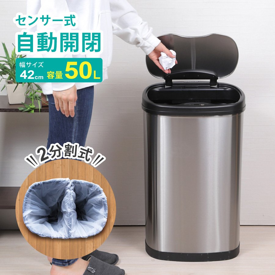 【キャンペーン】【当店限定180日延長保証】 Sun Ruck センサー自動開閉式 ゴミ箱 50リットル 2分別 ダストボックス 電動 自動開閉 フタ付き 縦型 スリム 大型 日用雑貨 生活雑貨 SR-ELT5012