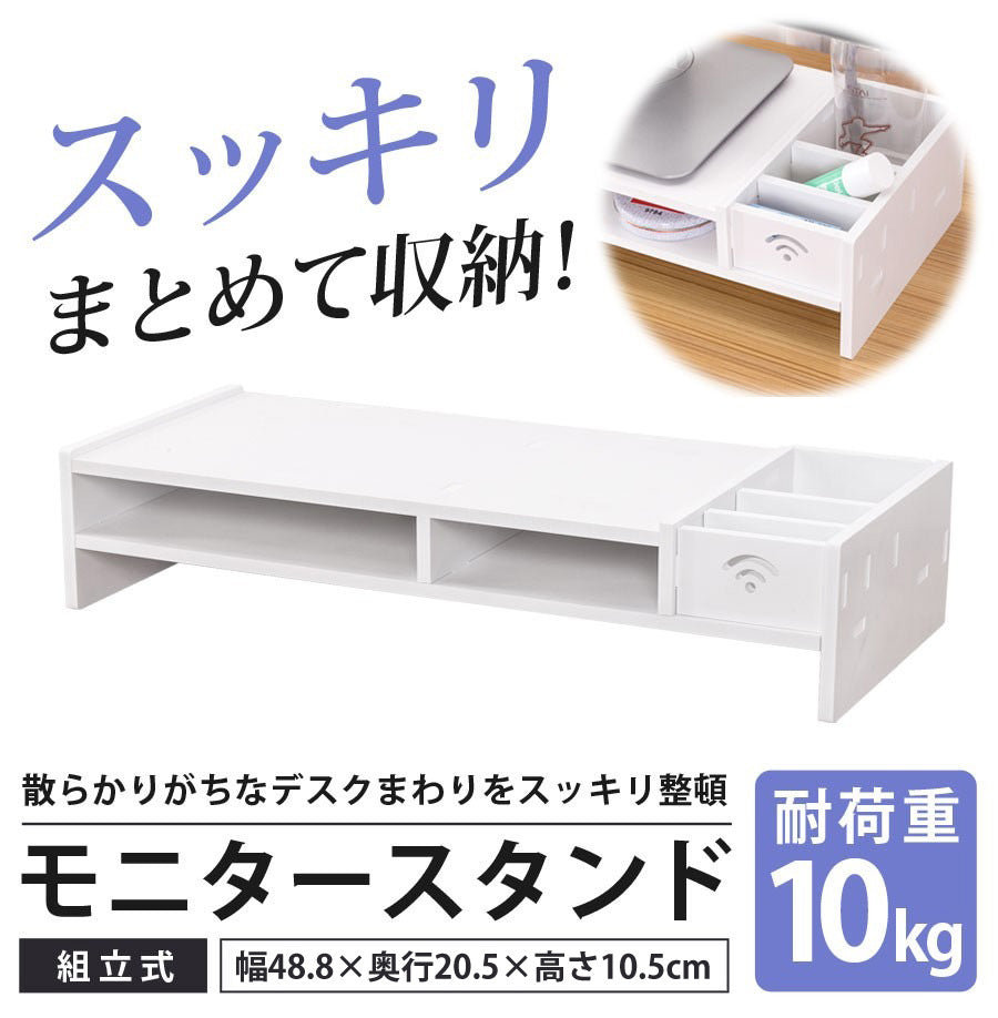 【キャンペーン】【当店限定180日延長保証】 Sun Ruck PCモニター台 約幅49cm 奥行20cm ロータイプ モニタースタンド キーボード収納 小物収納 卓上 モニターラック 収納ラック パソコンラック おしゃれ SR-MS010-WH
