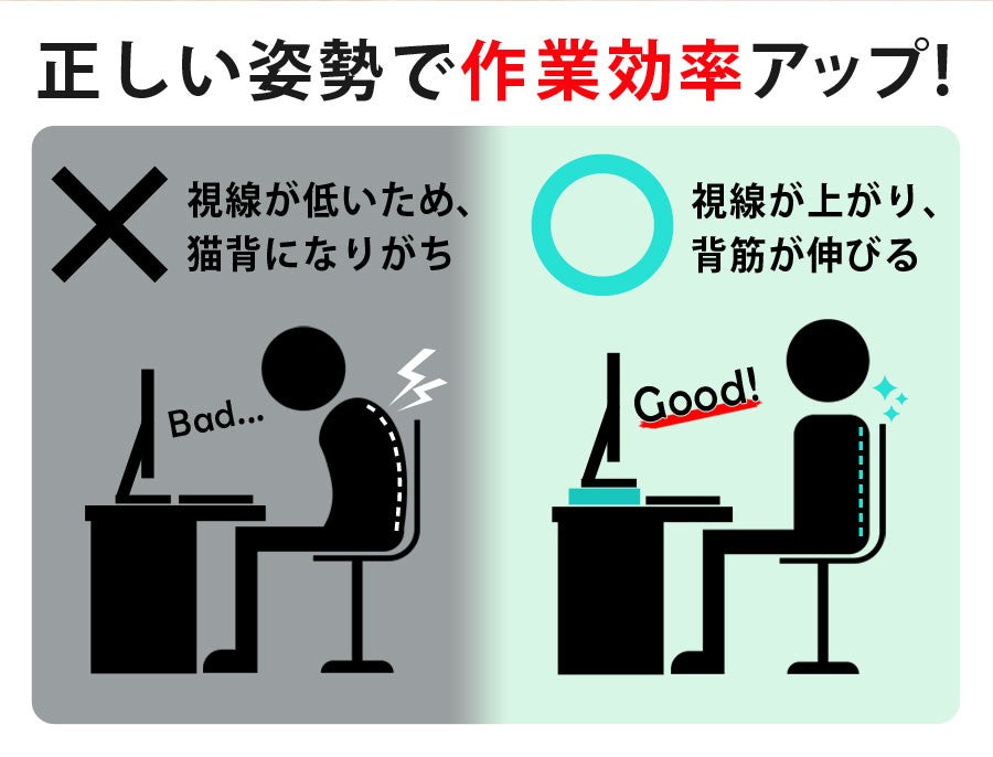 自然に背筋が伸びた状態に。正しい姿勢で作業効率アップ!