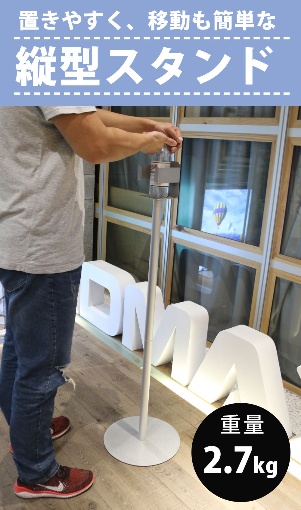 感染症の予防には毎日のこまめな対策が必要。 スリムで置きやすい 専用スタンド で正しく感染予防! 置きやすく、移動も簡単な縦型スタンド 支柱はアルミ製で女性一人でもらくらく移動。 店舗や学校、オフィスなどの室内はもちろん、 スリムだから入口にも置きやすい。 少面積でも容器が倒れにくい、消毒液トレー トレーは直径約11cmまでのさまざまな容器に対応。 側面にはガードが付いており、省面積でも倒れにくい。 壁に設置可能 省スペースの衛生対策に活躍。 背面に2つ穴が開いているので、ネジで壁に取り付けることが可能です。 ※ネジは別売りです。 |
