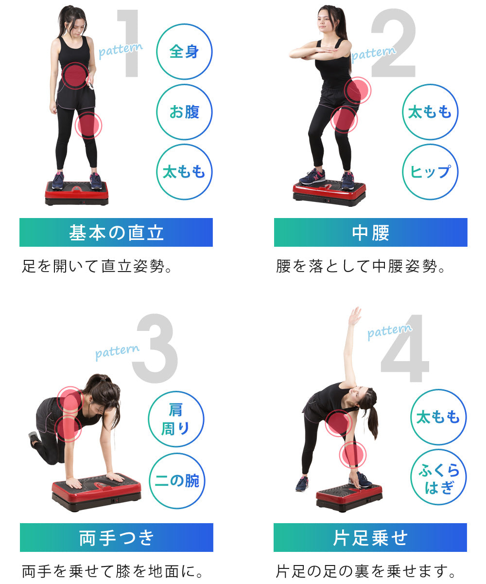 ご使用方法はかんたん、振動マシンに乗るだけ!1日10~15分の短時間で継続しやすく、効果が期待できます。