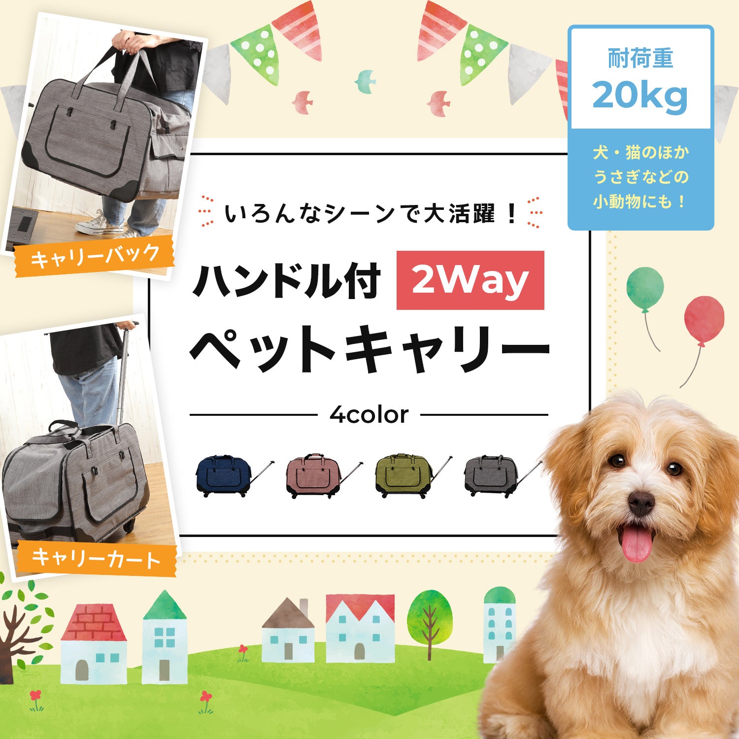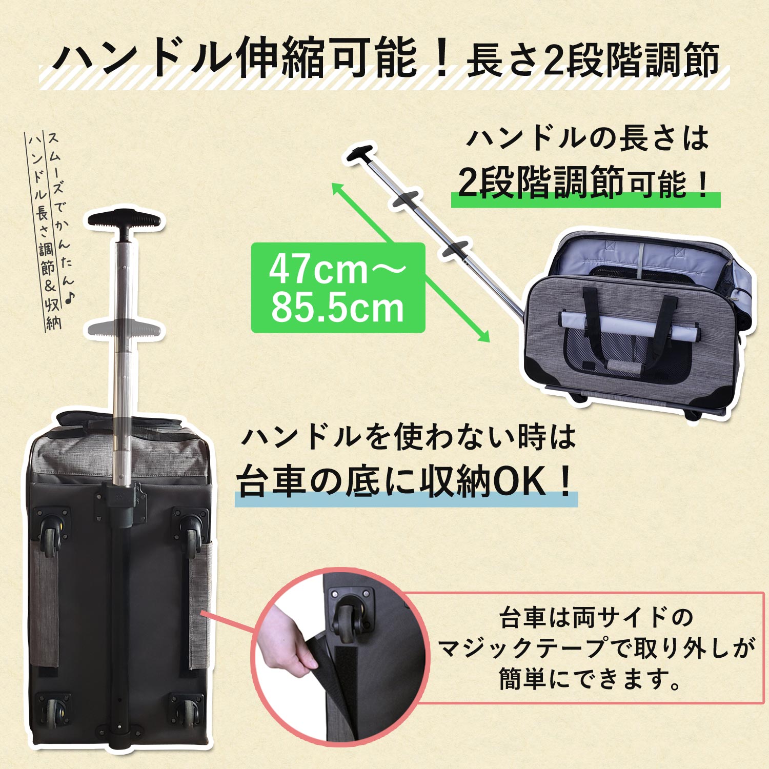 折り畳みタイプで、キャリーバッグとキャリーカートとしての2WAY使用可能です。外出の際、簡単に車に乗せることができ、ペットと一緒の外出にとても役に立ちます。