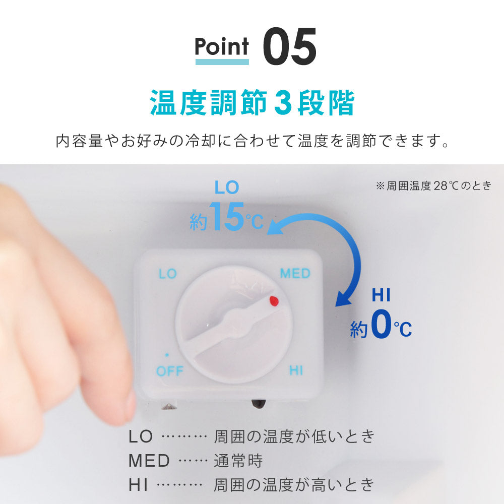 内容量やお好みの冷却に合わせて、温度を調節できます。