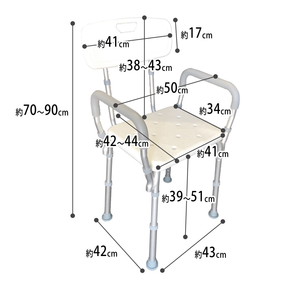 シャワーチェア 高さ6段階調節 背もたれ3段階高さ調節 ひじかけ付き
