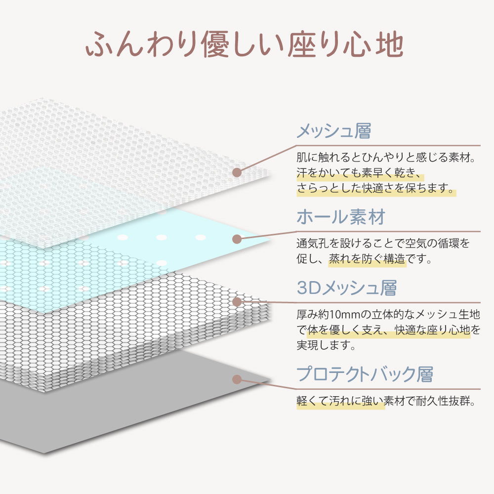 厚さがあってふんわりとした座り心地の秘密はこだわりの4層3Dメッシュ生地。