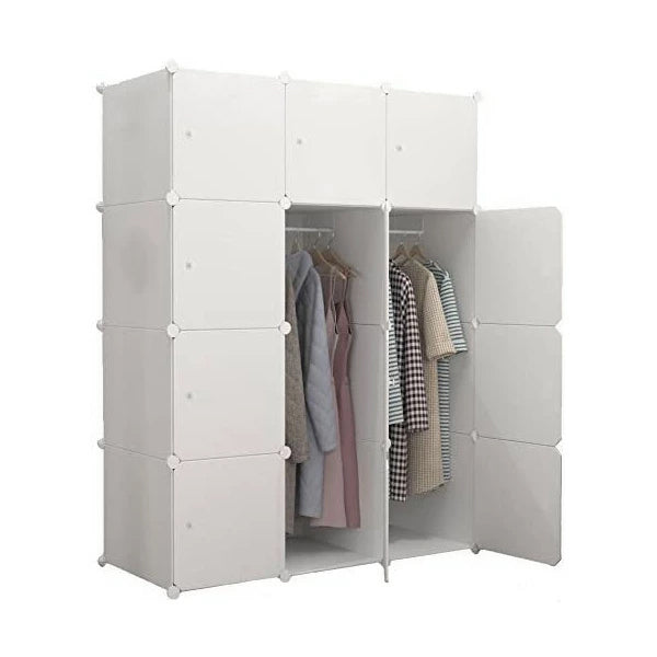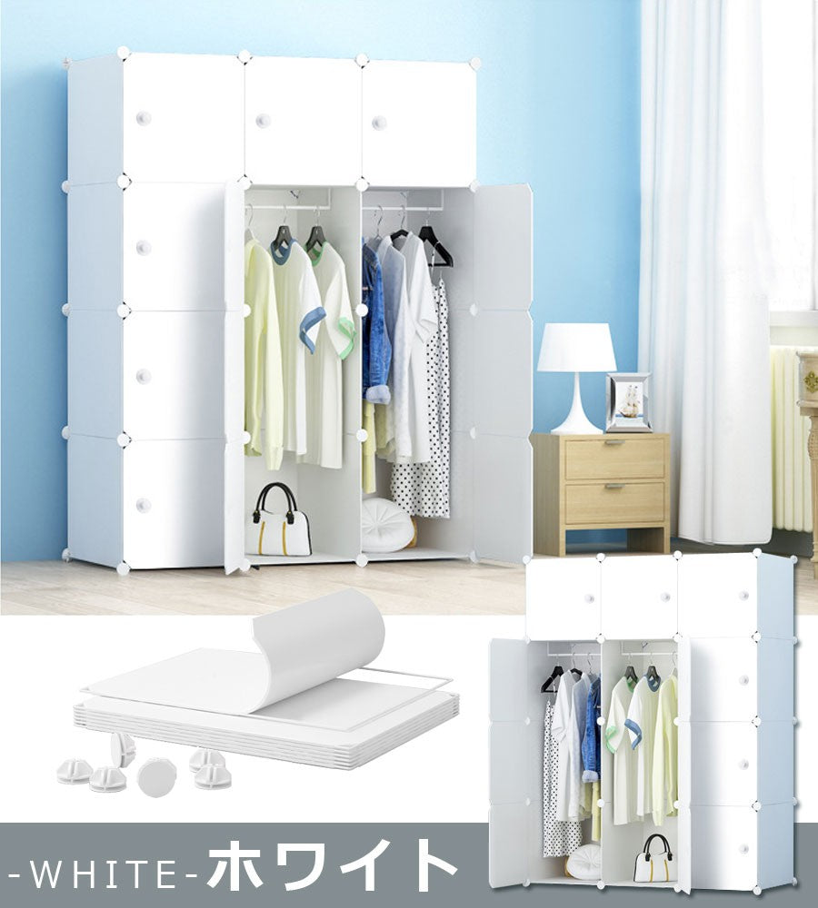 【当店限定180日延長保証】 Sun Ruck 組立式クローゼット ハンガーポール付き 収納ボックス 自由自在 組み立て式 軽量 プラスチック フタ付き 扉付き 収納ケース 収納ラック 衣類収納 棚 ワードローブ SR-STW034-WH