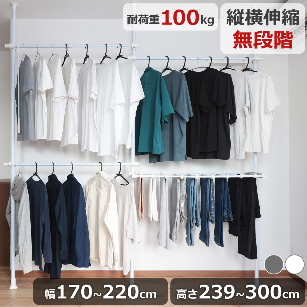 【当店限定180日延長保証】 Sun Ruck つっぱり棒ハンガー 幅170~220cm 2段 最大75着収納 耐荷重100kg SR-TH02SL SR-TH03SL