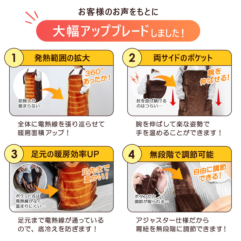 関連キーワード:ホットマット 電気ブランケット マルチブランケット 足元 大判 小型 足元暖房 床暖房 一人用 1人用 動ける電気毛布 動ける膝掛け 電気毛布 電気膝掛け 電気ひざ掛け 掛け毛布 掛毛布 敷き毛布 敷毛布 電気敷き毛布 掛け敷き 電気掛け敷き毛布 エプロンタイプ ショルダーストラップ ベスト ヒーターベスト 着る こたつ 歩けるこたつ 冬物家電 暖房家電 暖房用品 暖房器具 ポケット付き 省エネ 節電 エコ PTCヒーター NTCヒーター 丸洗い 手洗い 洗濯 オートオフ 在宅勤務 テレワーク ヒートショック ヒートショック対策