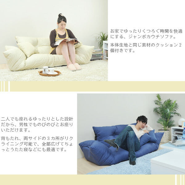新ジャンボカウチソファ 2人掛け 7段階リクライニング 選べる9色 清潔撥水加工 クッション2個付き ソファ カウチソファ 【代引/同梱不可】